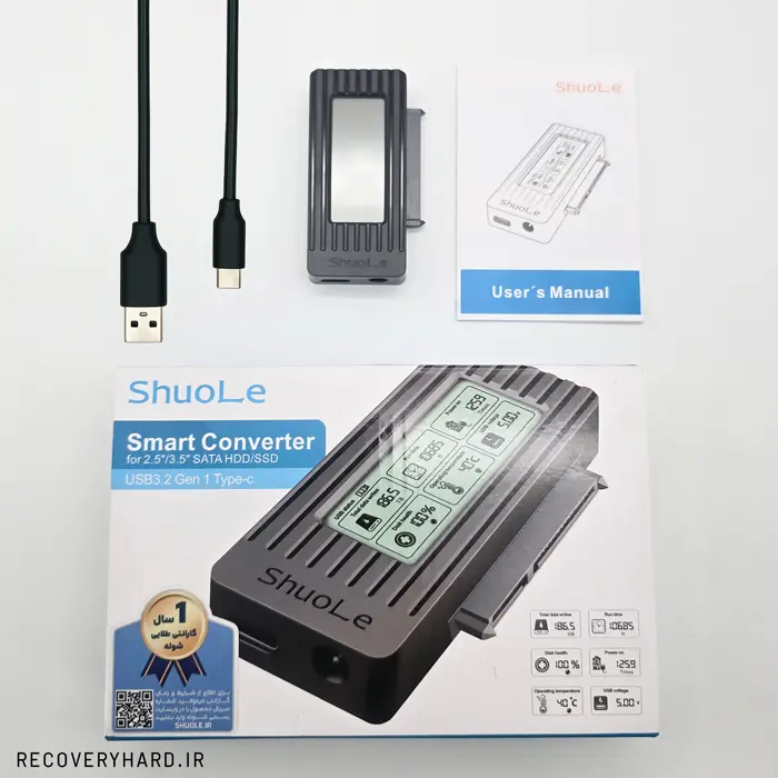 با باکس هارد SHUOLE مدل U25C-L میتونی خیلی راحت وضعیت هارد و SSD رو دقیق بررسی کنی. این دستگاه امکاناتی فراتر از نرمافزارهای تست هارد در اختیارت میذاره تا بهتر از اطلاعاتت محافظت کنی.